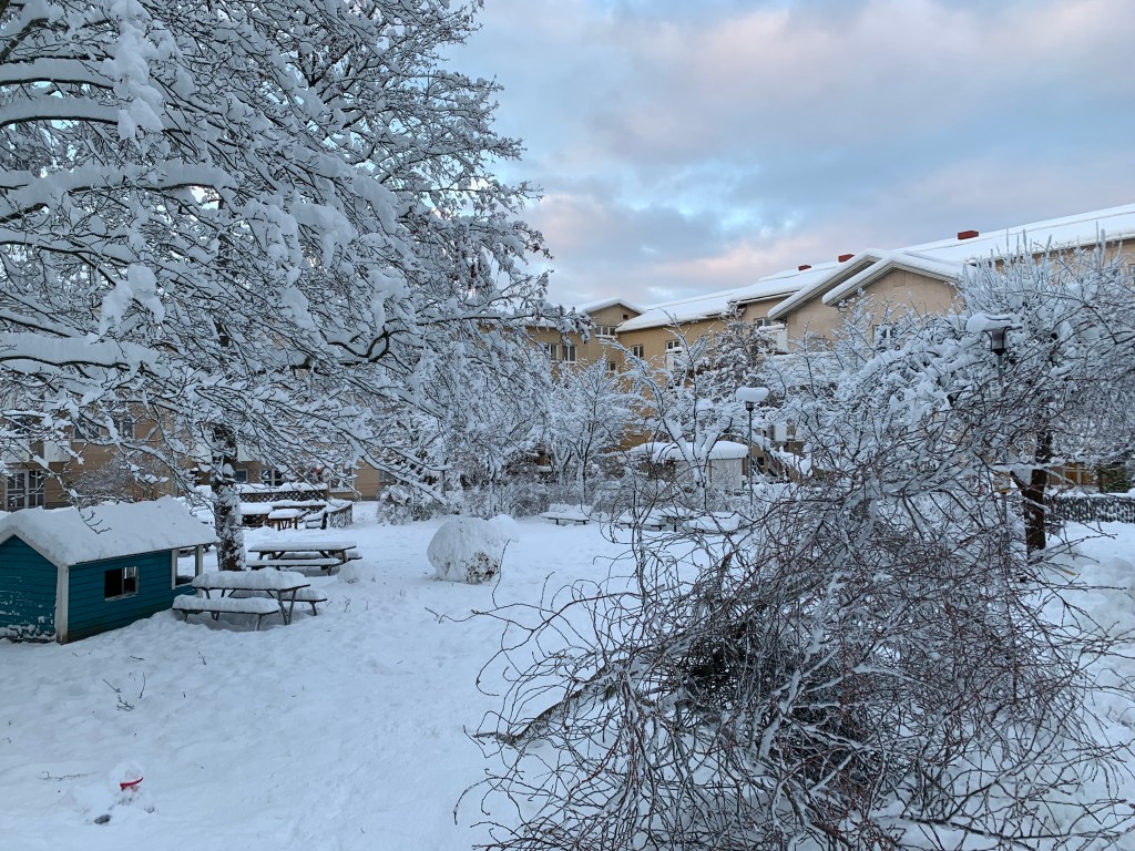 Det kraftiga snöandet har tyngt ned träden så att många grenar brustit. Det vore bra om alla som har möjlighet hjälps åt att skaka av snön från träd och buskar med hjälp av en kvast eller liknande. Trädgårdsfirman har kontaktats för att hantera de skadade träden men det kommer att dröja innan de kommer.