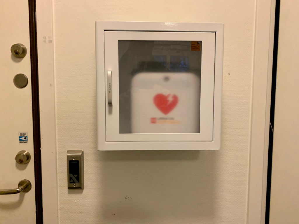 Skåpen som hjärtstartarna förvaras i är larmade och en signal utlöses när luckan öppnas.